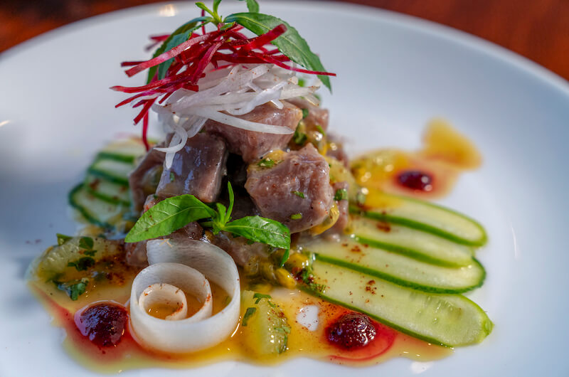- Starters: Citrus-fennel salad, heirloom tomato burrata, ahi crudo